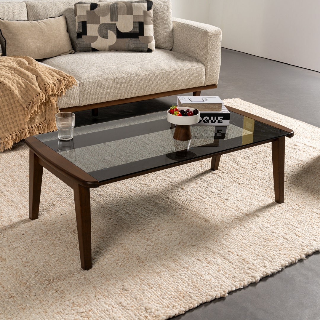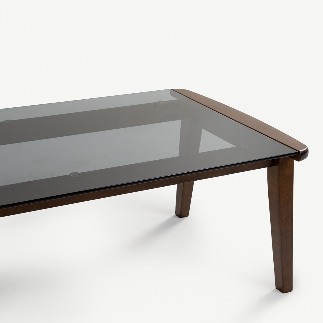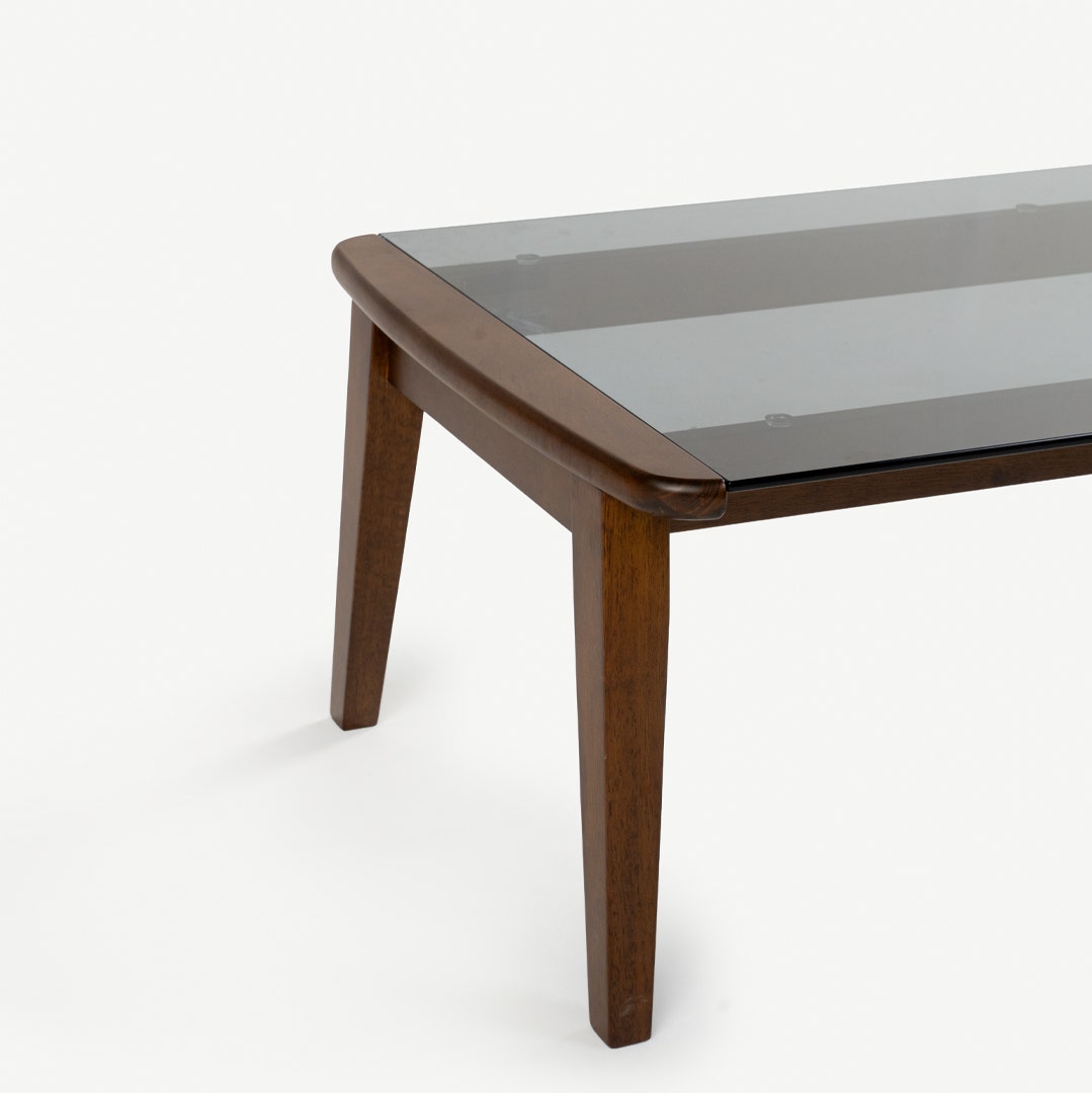 - الخامة: "السطح: زجاج مقسى باللون الرمادي الأوروبي، الأرجل: خشب المطاط الصلب"
