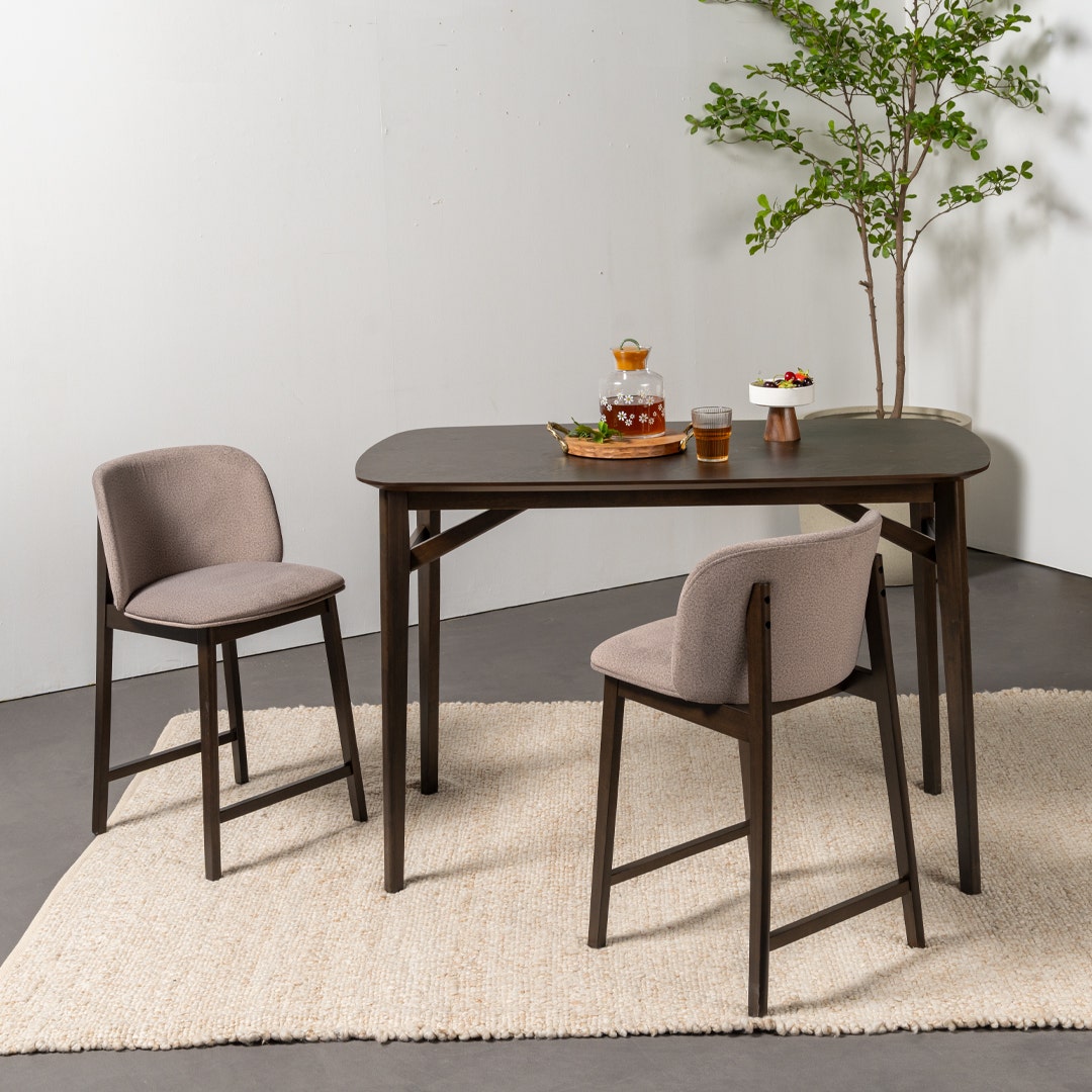 - الخامة: "السطح: خشب مضغوط مع قشرة خشب الرماد الصيني مقطعة ربعياً + نمط متقاطع على شكل عظم السمك، الأرجل: صغير"