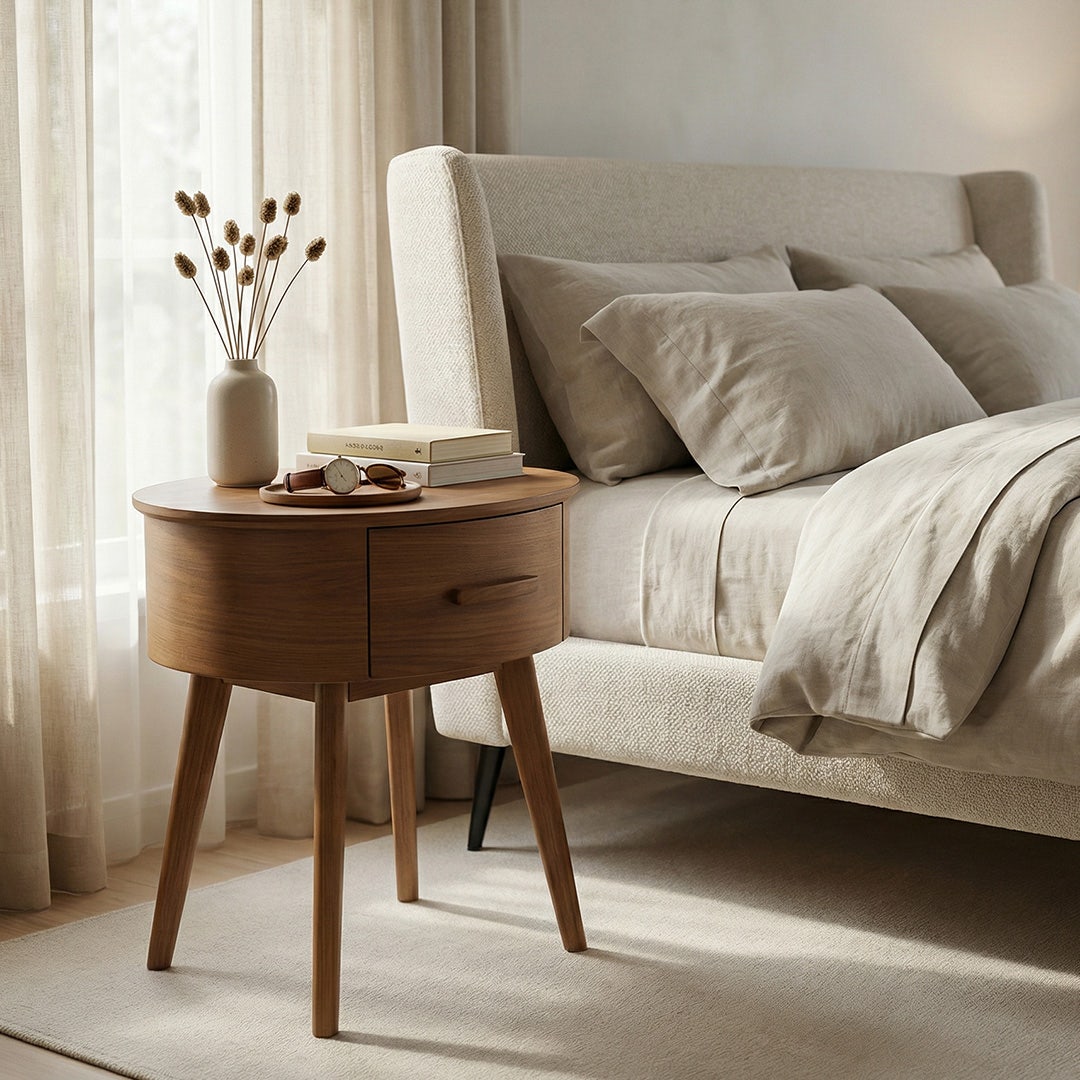 Complete your bedroom space with Elton collection! Its super-sleek walnut look brings you enough storage capacity! Store everything from night cream to charger and phone - based on your choice!