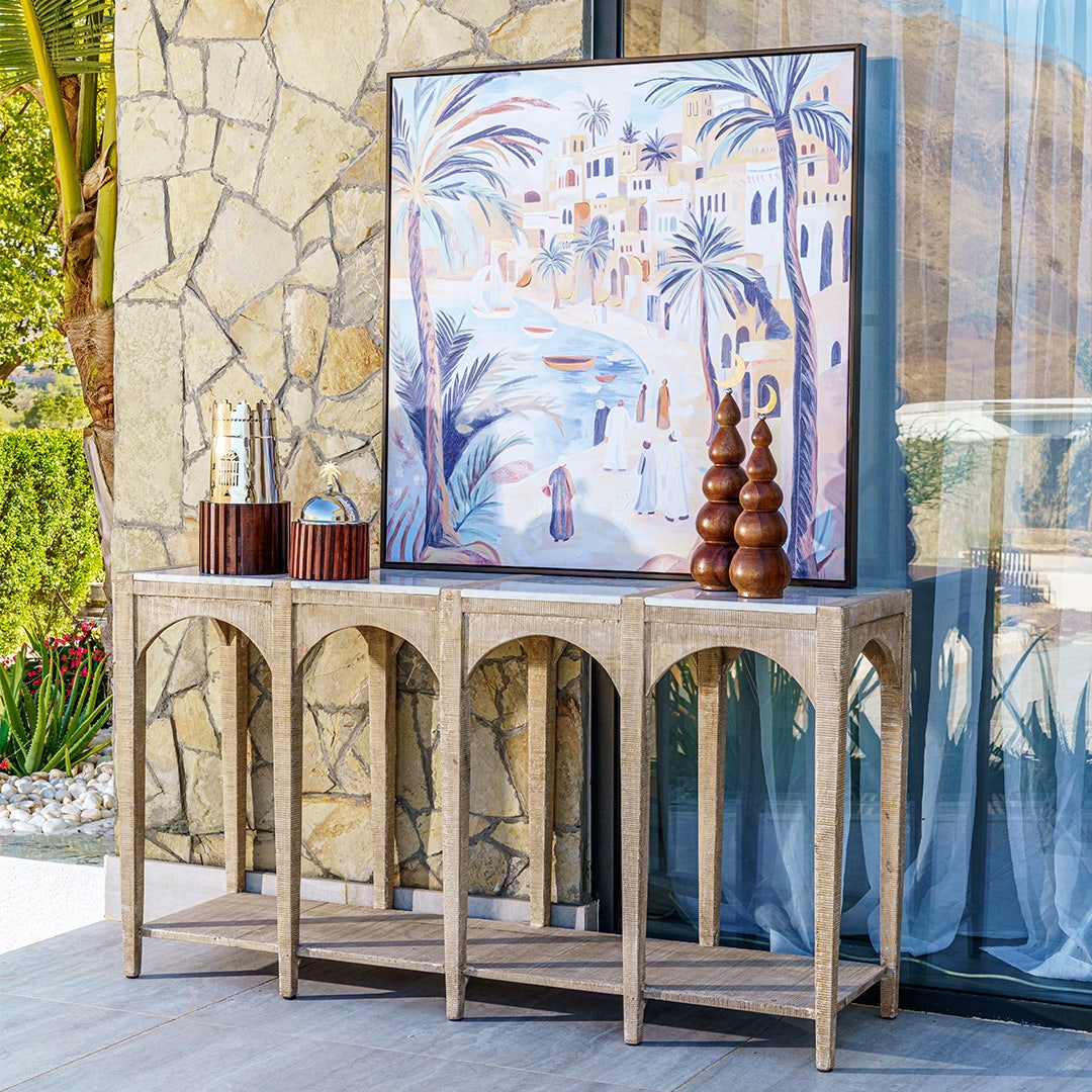 - الخامة: خشب مانجو + خشب مضغوط + رخام