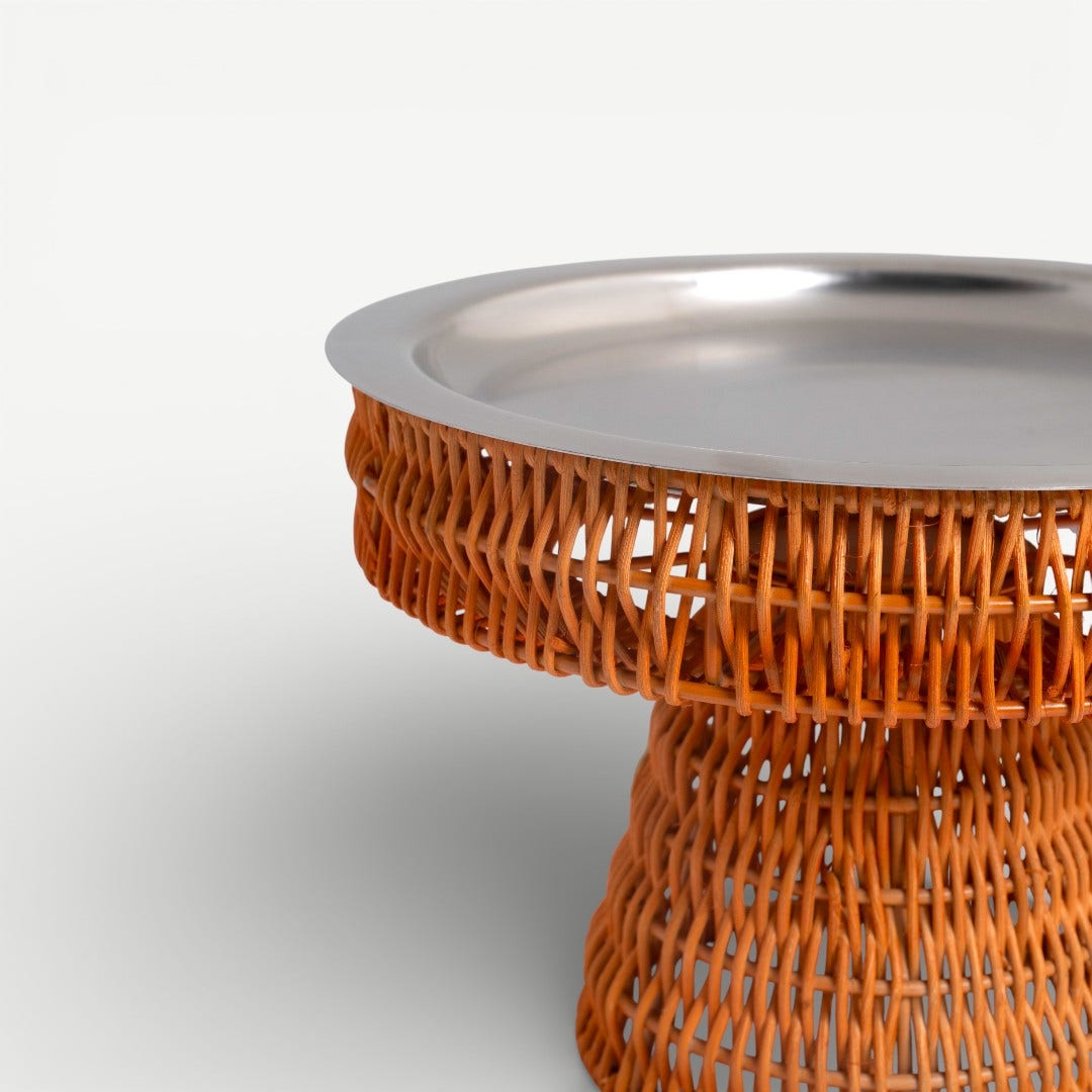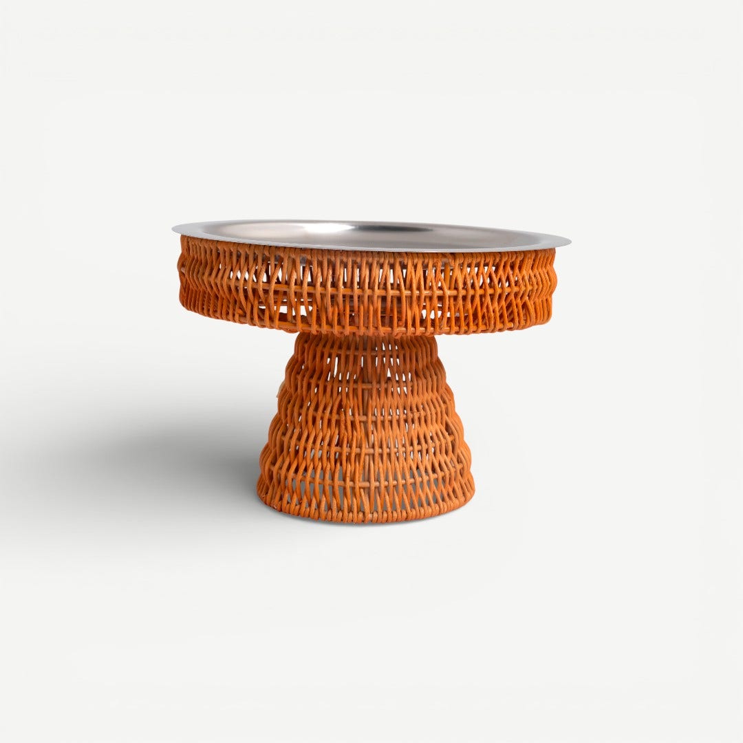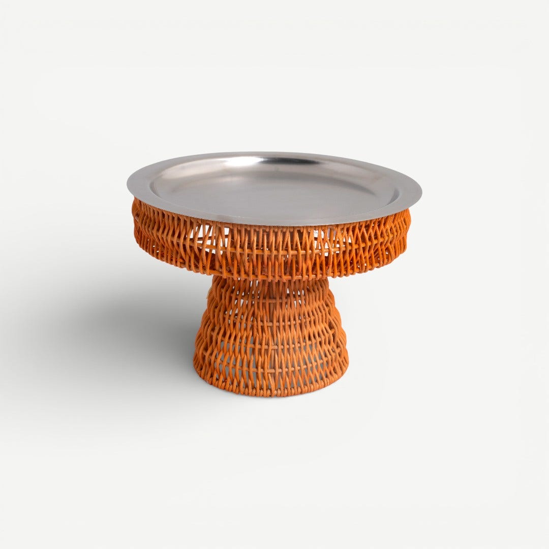 Bring an earthy, hand-crafted soul to your dessert table. The Heritage Bamboo Cake Stand is a celebration of natural textures, featuring a pedestal and rim wrapped in a warm, honey-toned bamboo weave. Topped with a sleek stainless steel plate, it creates a striking visual balance between rustic craft and modern elegance.