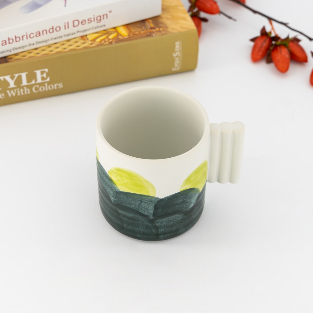 كوب لامسي بلونه الأخضر الزجاجي العميق ينبض بسحر الطبيعة. بسعته الواسعة، يصبح خياراً رائعاً لاستمتاعك بالشاي أو القهوة في أوقات الاسترخاء. يضيف لونه الأخضر الداكن لمسة من هدوء الغابات إلى تجربتك اليومية، مما يجعل كل مشروب رحلة إلى أحضان الطبيعة.