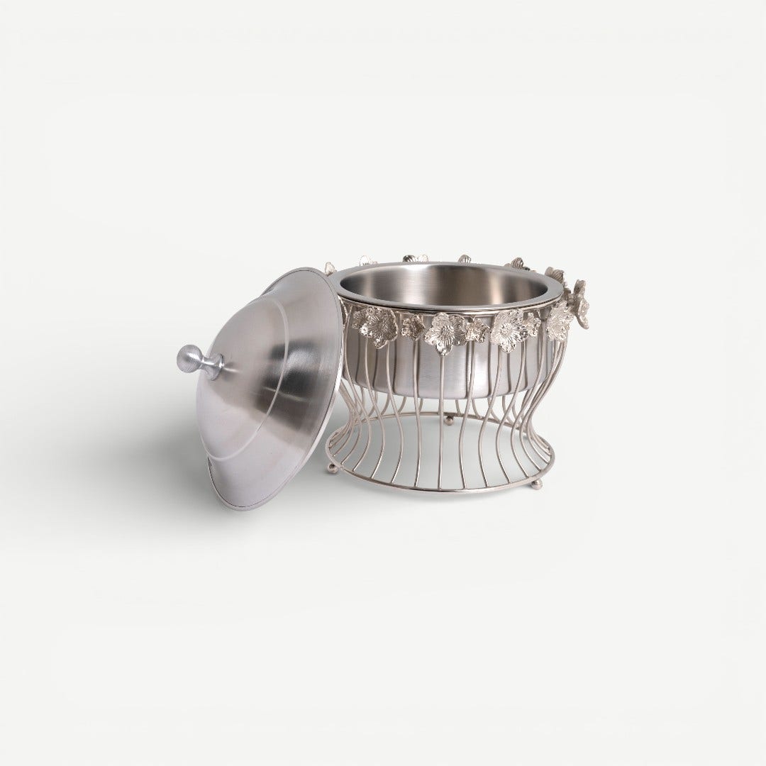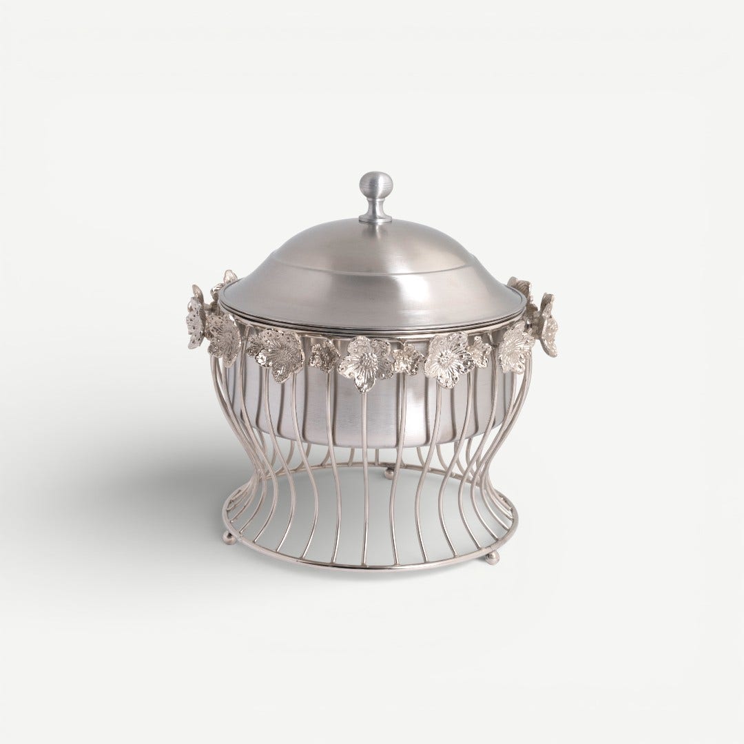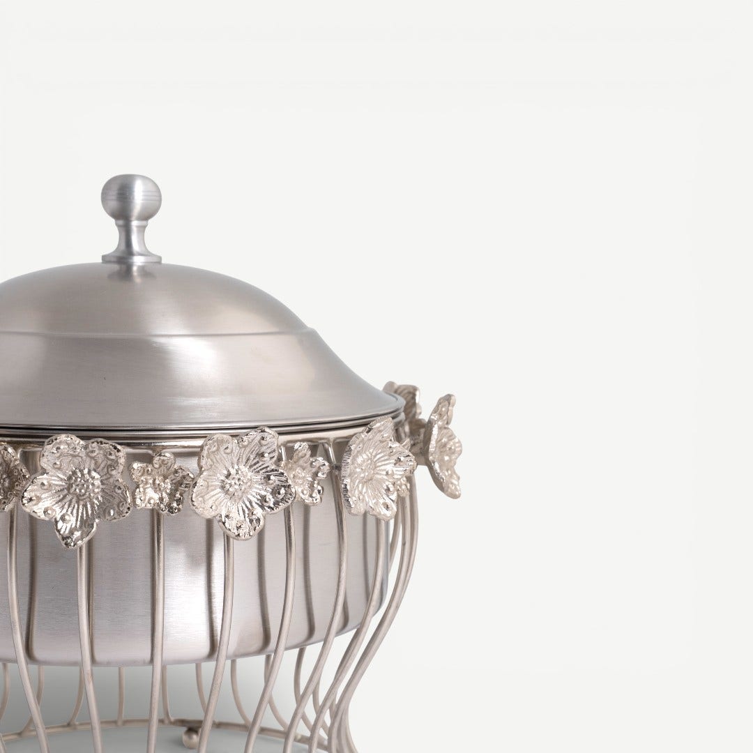 Elevate the centerpiece of your dining table with a vessel that feels less like kitchenware and more like a curated heirloom. The Leafy Floral Hot Pot with lid blends the industrial cool of brushed stainless steel with an ethereal, botanical form. A delicate crown of cast aluminum flowers blossoms around the rim, and a rhythmic, wire-frame pedestal gives the piece a sense of weightless grace. Whether it's a vibrant summer gazpacho or a comforting winter stew, this tureen ensures your presentation is as memorable as the meal itself. It’s a celebration of functional art.