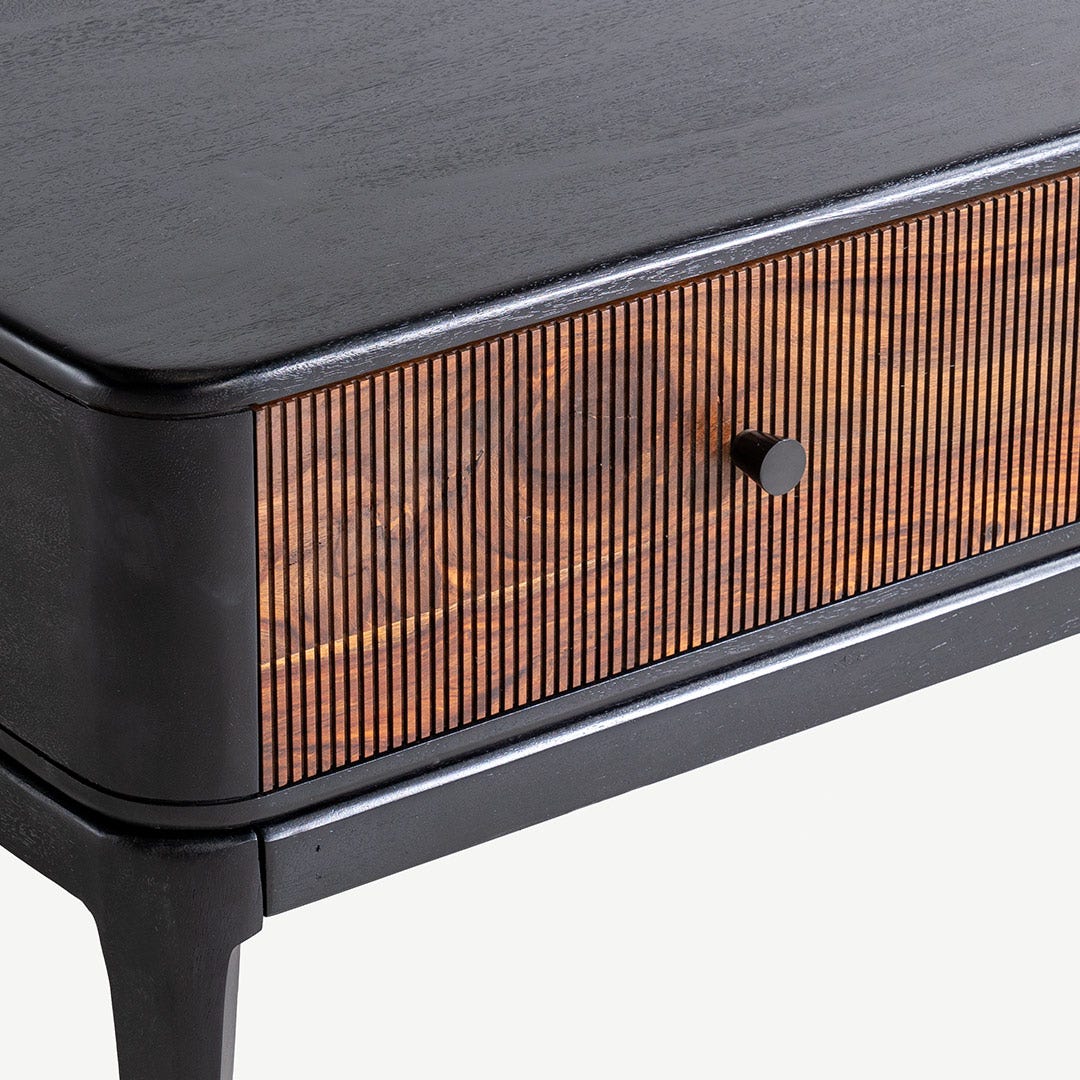 تتميز هذه القطعة العصرية بتصميمها النظيف والخطوط الحديثة، مما يعزز من تناغم غرفة المعيشة. هيكلها الخشبي الدافئ وأرجلها المعدنية الأنيقة تضمنان جمالاً فريداً، بينما تضفي تقنية CNC دقة واضحة، لتكون مجموعة ليراس الخيار الأمثل لغرفة معيشة راقية.