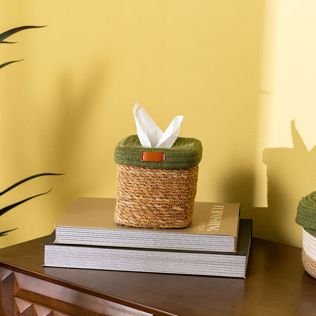 خزن صندوق المناديل بأناقة مع هذا الغطاء المصنوع يدويًا والذي يضيف لمسة طبيعية لديكورك. يتميز بتصميم سهل الاستخدام، حيث يرفع الغطاء بكل سهولة، مما يجعل استبدال المناديل سريع وسهل.