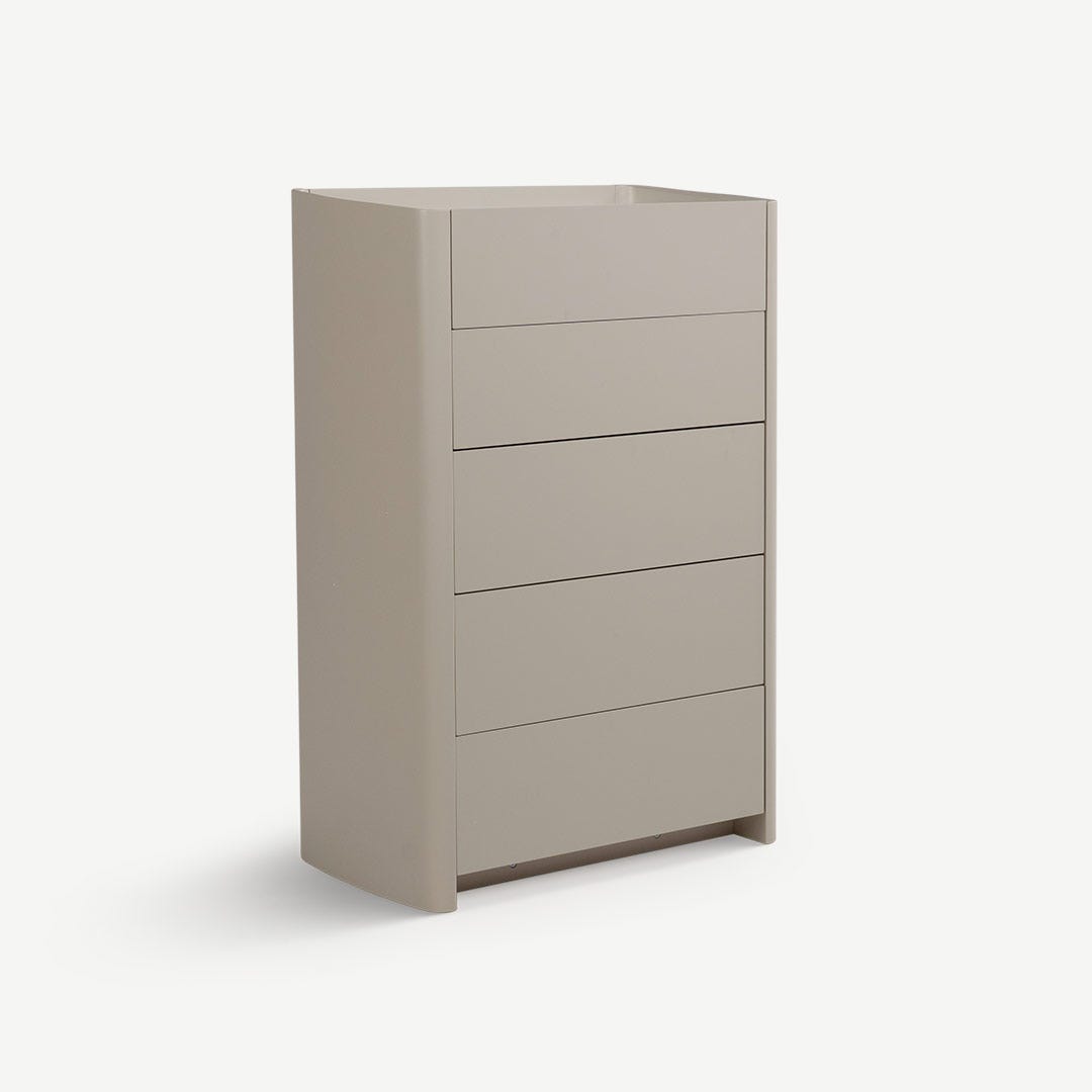هل الأرض مليئة بالملابس المبعثرة؟ هل تحتاج لمساحة عمودية أكبر لتنظيم أغراضك اليومية؟ خزانة لوسياس ذات الخمسة أدراج صممت لترفع مستوى التنظيم لديك بكفاءة. نحيفة لكنها واسعة بشكل مفاجئ، مما يجعلها الحل الأمثل لتوفير المساحة. أدراجها الكبيرة المزودة بنظام الفتح بالضغط توفر سعة كافية لكل شيء، من التيشيرتات المفضلة والأقمشة الحساسة إلى الإكسسوارات وحتى الأوراق. الزوايا الناعمة والمدورة تضفي لمسة عصرية أنيقة، لتكون إضافة متكاملة تناسب أي غرفة بكل سهولة.