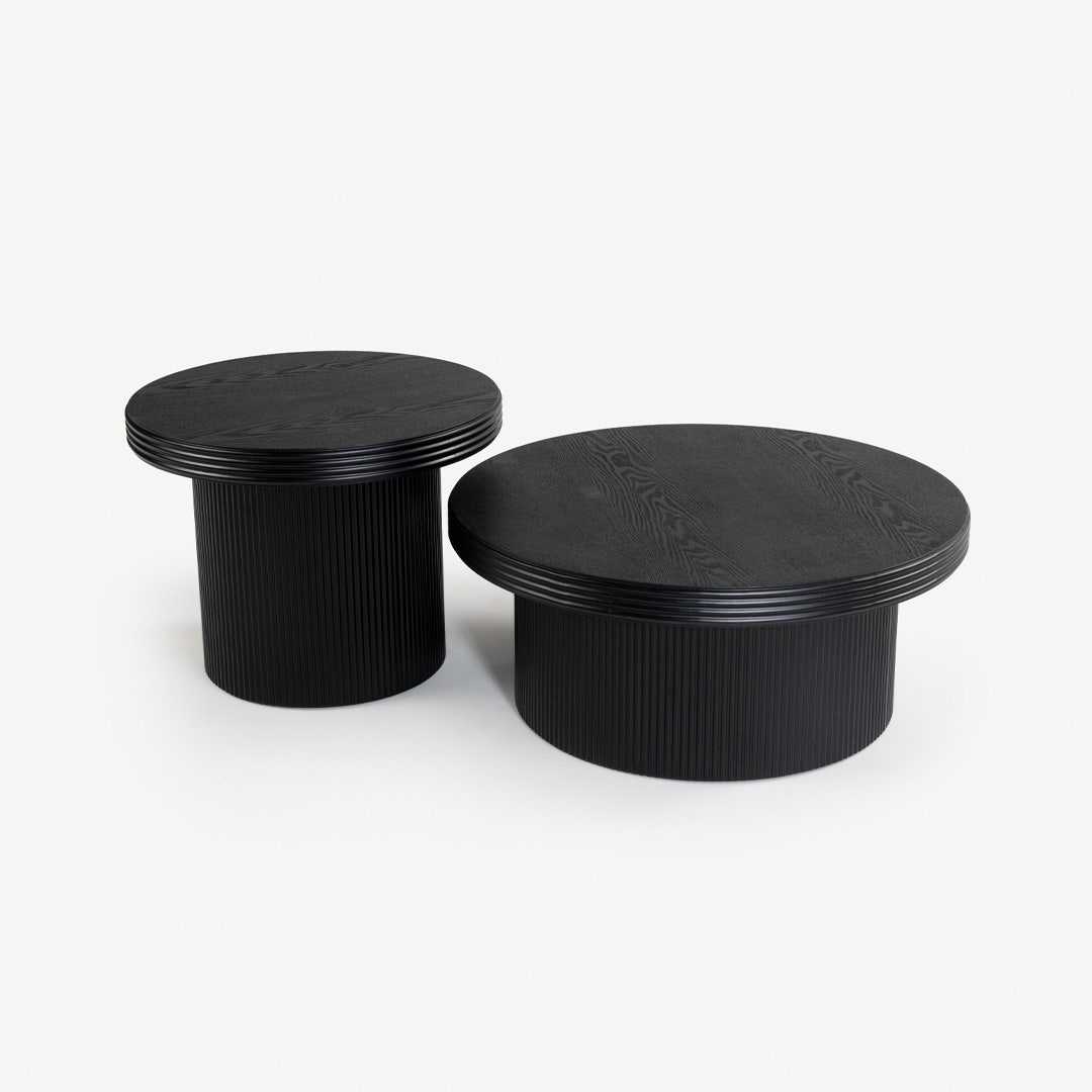 يضيف طقم طاولات القهوة ميرلين لمسة مميزة لمنزلك بفضل تصميمه المنحوت ولون الجوز الغامق. تتناغم القواعد المحززة مع الأسطح الدائرية النظيفة، لتقدم مظهرًا يجمع بين العصرية والدفء الطبيعي. * مصنوع من خشب مضغوط وقشرة خشبية للقوة والأناقة. * طقم مكون من طاولتين متناسقتين. * التصميم الدائري يوازن ترتيب أثاث الزاوية.