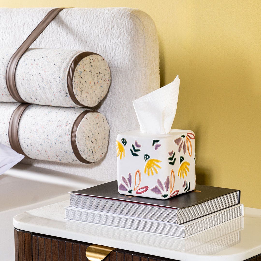 طريقة مرحة وملونة للاحتفاظ بالمنديل بالقرب منك، بينما تضيف لمسة من السحر إلى مساحتك. مع تصميمها الزهري النابض بالحيوية، إنها وسيلة رائعة لإضفاء لمسة من الحياة على أي زاوية.