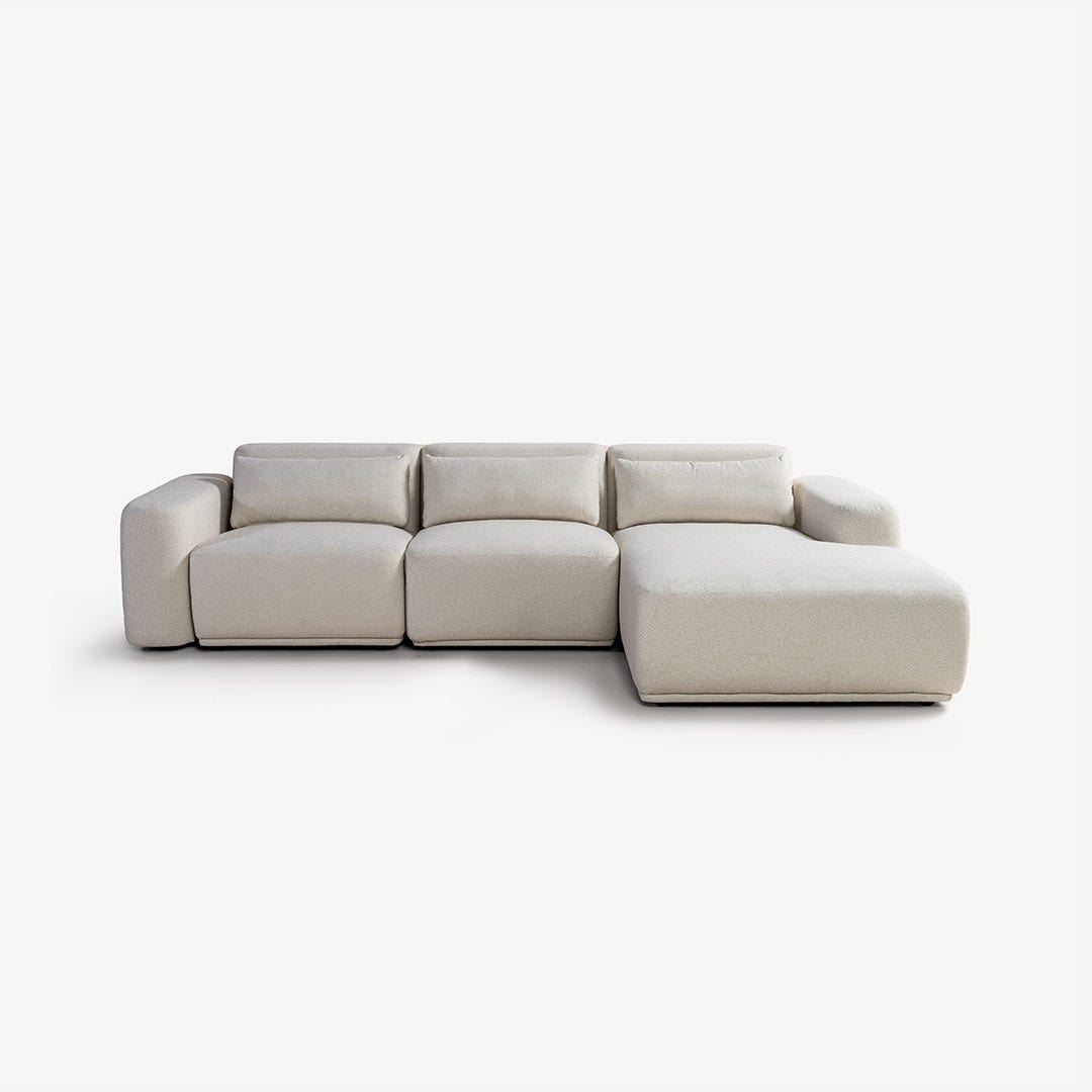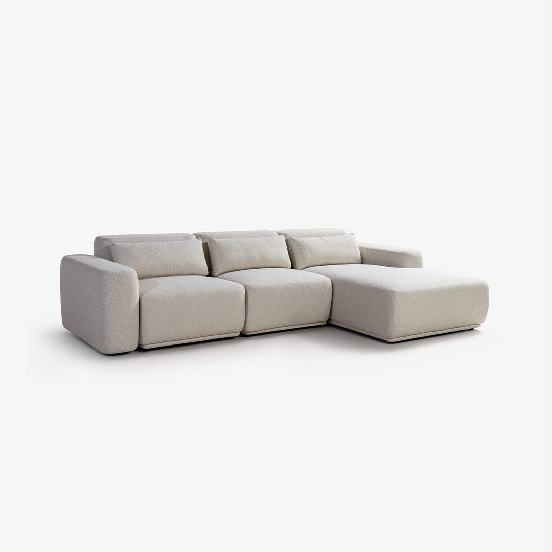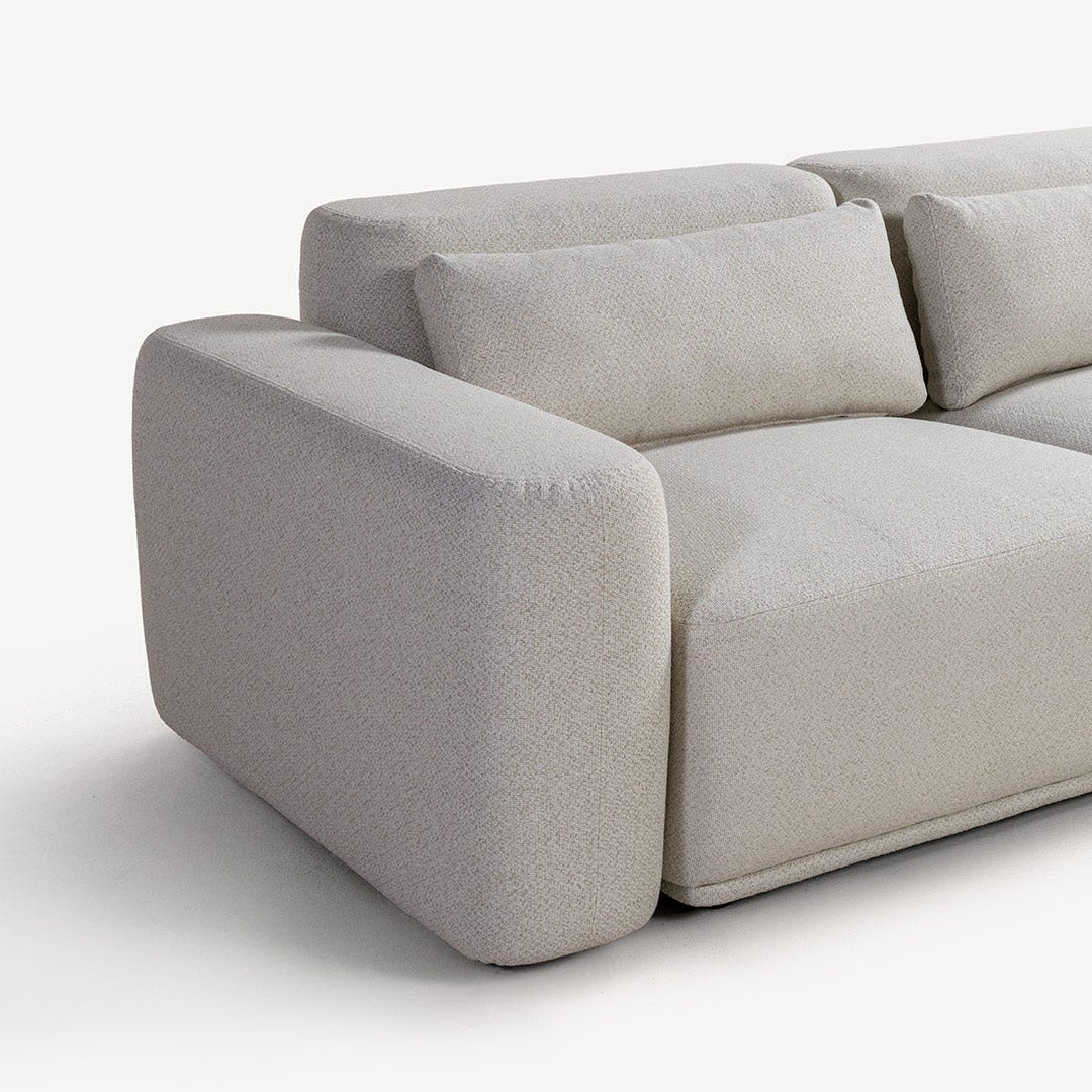 كنبة الزاوية اليمنى بالوما مصممة لتمنح مساحتك شعورًا بالراحة والثبات. قماشها باللون البيج ينسجم بانسيابية مع ألوان الخشب الدافئة، والرمادي الفاتح، والأخضر الميرمي. مثالية للمساحات المفتوحة، ويمكن تحديد منطقة الجلوس بوضع سجادة كبيرة تحتها، لتحافظ على أجواء هادئة ومتناسقة.