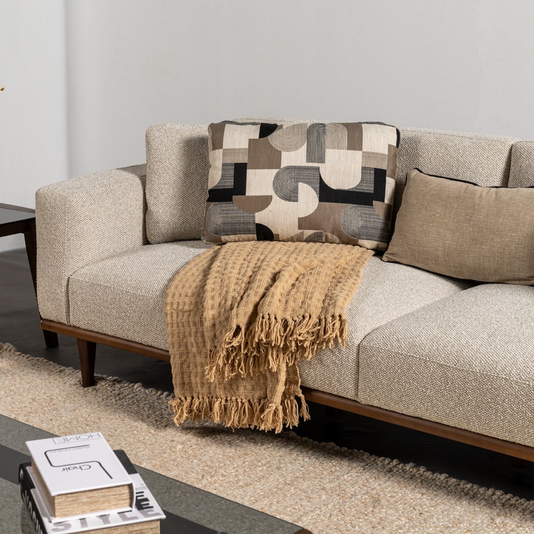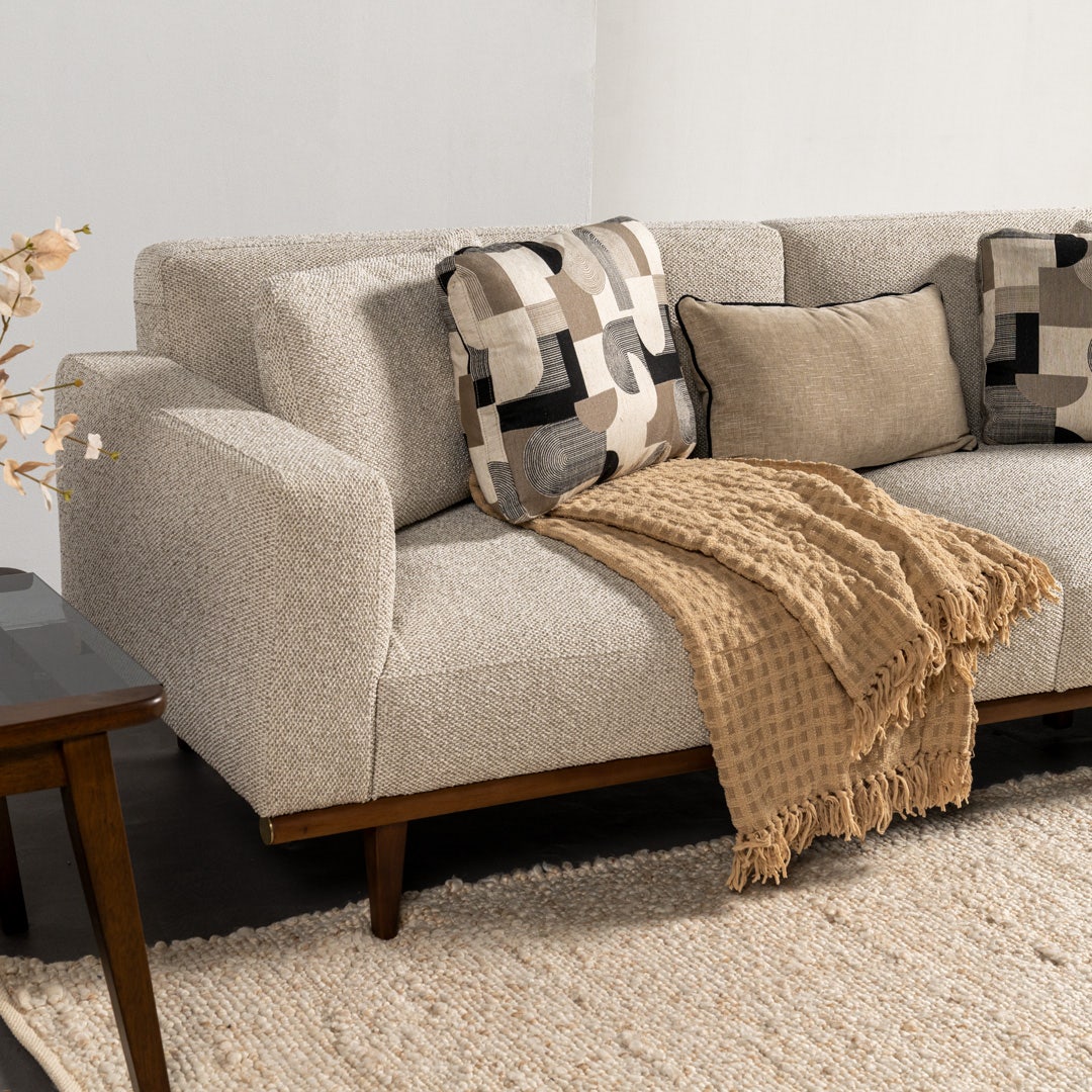 تضفي البطانية الخفيفة ريماس لمسة من الدفء على أي مساحة بفضل نقشتها الجميلة على شكل الوافل والحواف المزخرفة بشرابات ناعمة. يمنح لونها الترابي شعور طبيعي ومريح، لتكون مثالية لوضعها على الكنبة، أو كطبقة على السرير، أو للاسترخاء بها في أمسيات هادئة بالمنزل. * مصنوعة من الأكريليك 100% لملمس ناعم وخفيف ومريح. * نسج بنمط الوافل يضيف عمقًا وجاذبية بصرية. * الحواف المزخرفة بالشرابات تمنح مظهر عصري ومريح. * سهلة الطيّ، والتوزيع، والطبقات في جميع أرجاء المنزل.