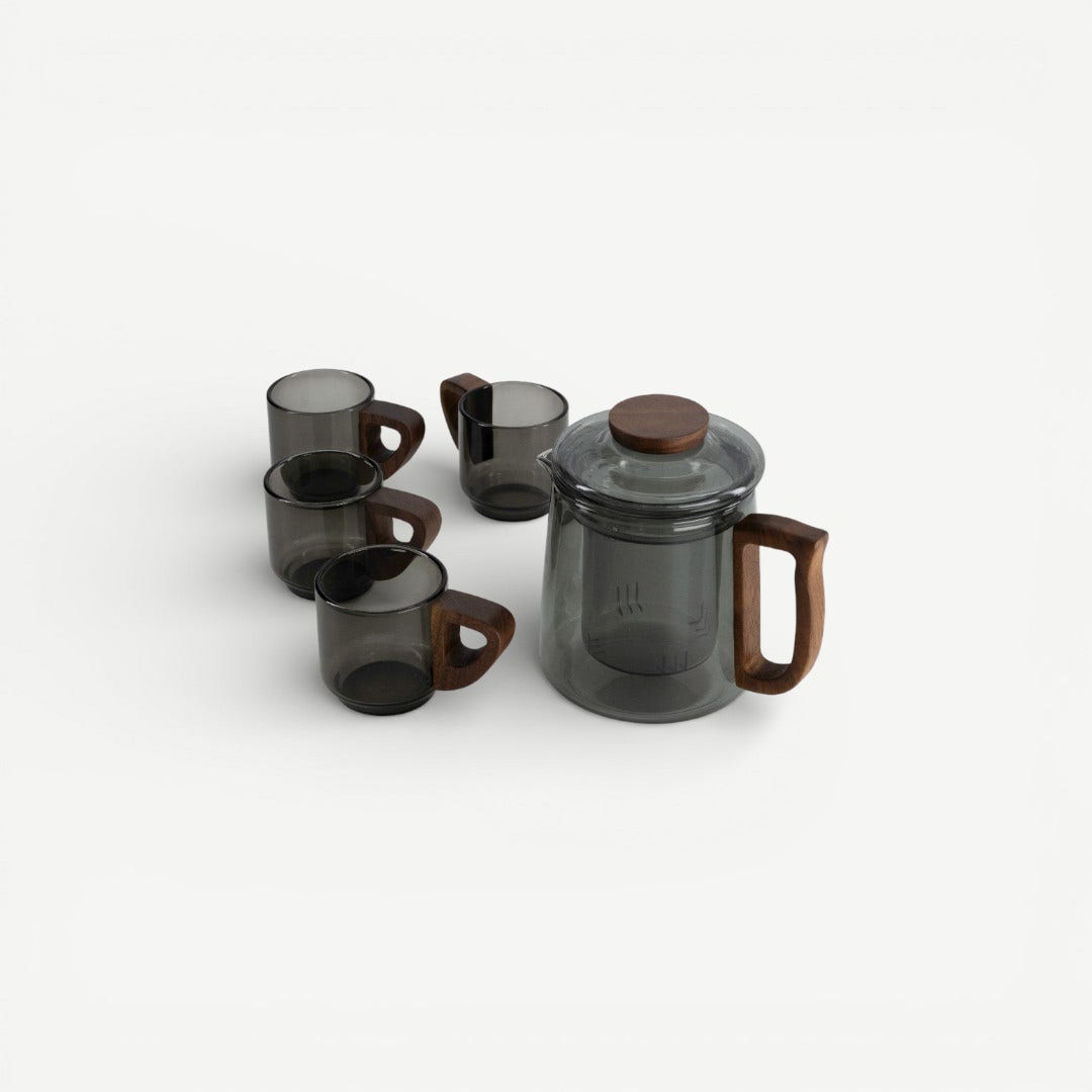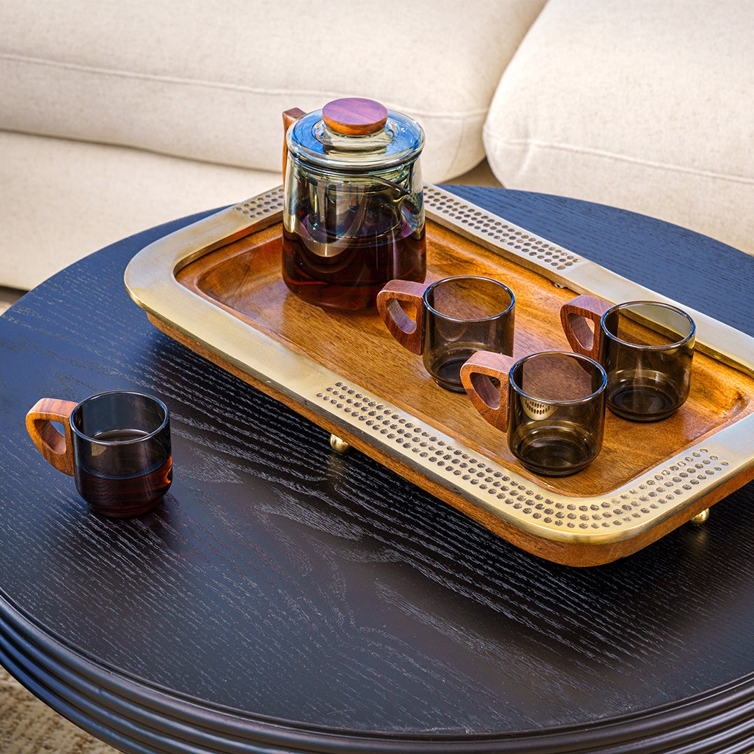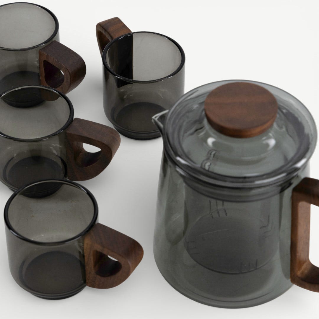 - الخامة: زجاج عالي السيليكا + خشب الجوز