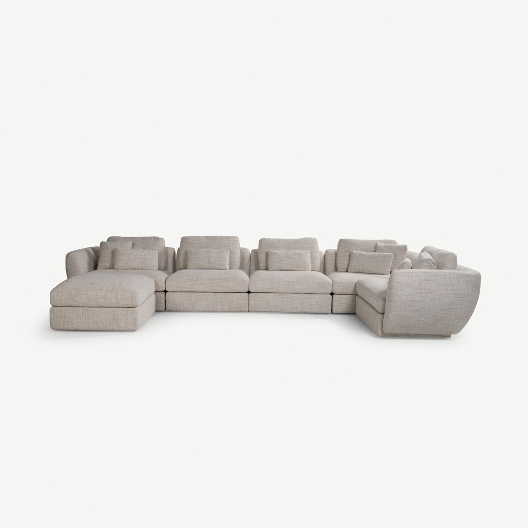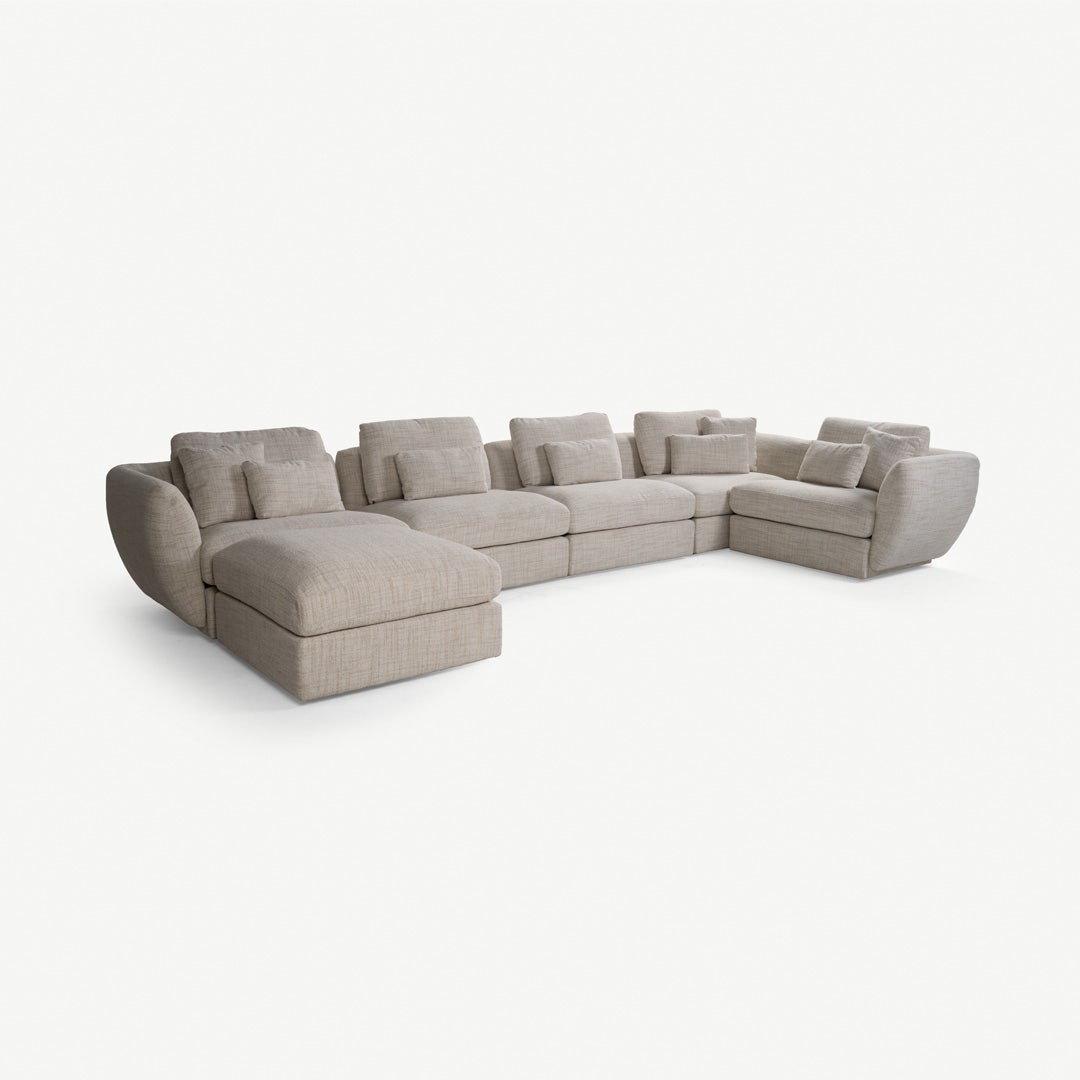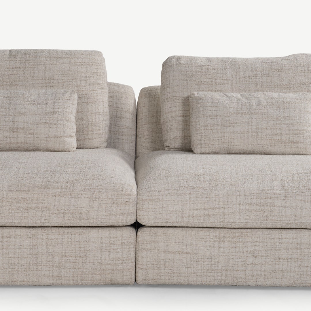 - الخامة: إسفنج، حزمة نوابض، خشب، قماش، حشو قطن، أرجل بلاستيكية، قطع معدنية