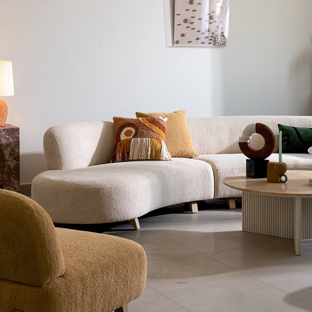 This cosy corner sofa features comfortable fixed seat cushions and a supportive wooden frame. Plus, it comes with five included cushions for added comfort and a touch of personalised style.