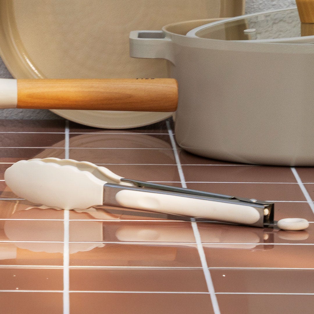 Grabs, flips, and serves like a pro. Crafted with stainless steel and finished with silicone tips for a comfy grip that’s gentle on your pans. This tong is handy loop for hanging and a firm spring action that makes one-handed work feel effortless.