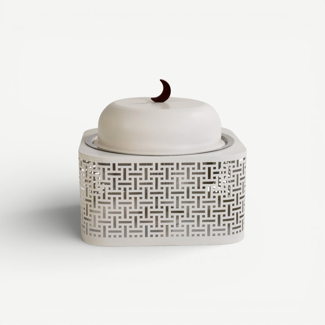 The Vogue Chafing Dish is designed to keep gatherings flowing without interruption, acting as a quiet companion that maintains the perfect serving temperature while conversations carry on. Its architectural form is elevated by a latticed base and an elegant crescent moon detail, bringing a ceremonial feel to the table and transforming everyday hosting into a considered experience.