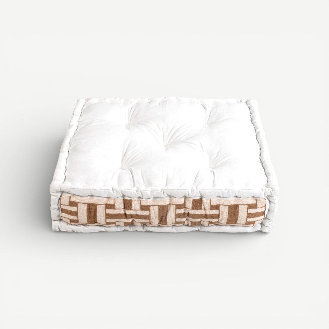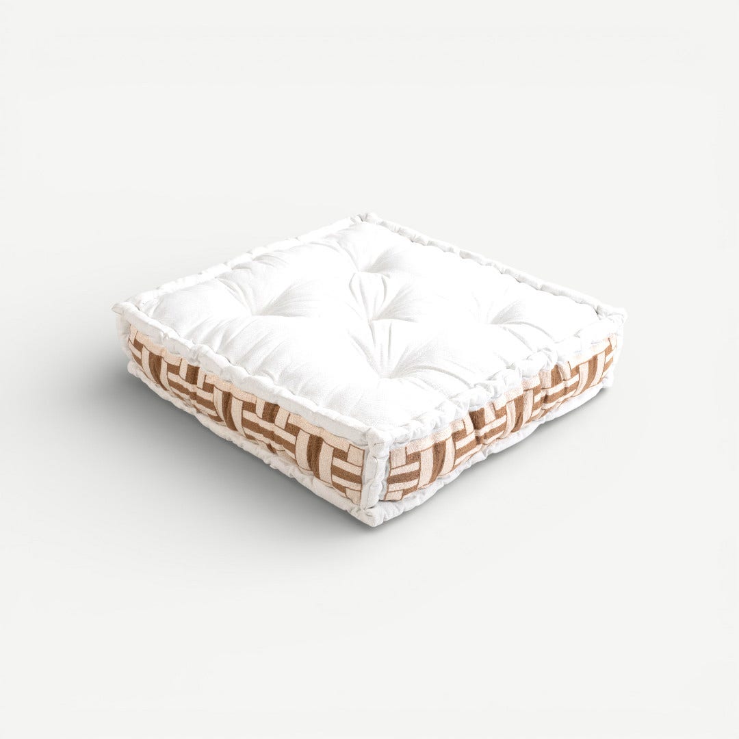 Effortless style in soft luxury. Wrapped in a premium fabric, this Floor Cushion features a soft cream-to-beige palette that seamlessly blends with minimalist and traditional interiors. Its 10cm height provides a plush, supportive loft that is perfect for gathering around a coffee table, meditation, or as a cozy perch for children.