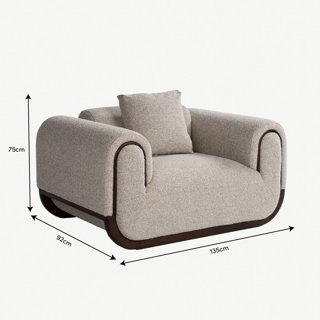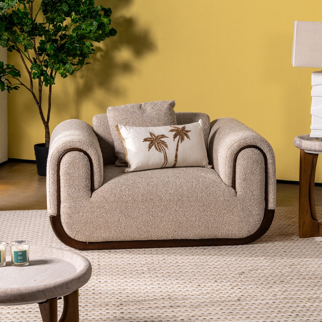 كنبة فردية مريحة بتصميم كرسي باللون البيج توفر لك مساحة خاصة للاسترخاء. مثالية للمساحات الصغيرة أو زاوية قراءة هادئة، مصنوعة من قماش عملي وسهل العناية، لتجمع بين الراحة اليومية والأناقة دون التأثير على ميزانيتك.