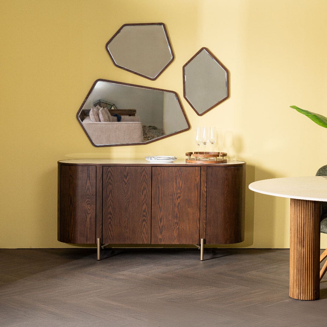 Got a spacious home but need a statement piece that ties it all together? The Devrell Sideboard is exactly that. With a sintered stone top and a wooden structure, this sideboard has plenty of room for storing your essentials, and the sleek doors open up to reveal spacious shelves.