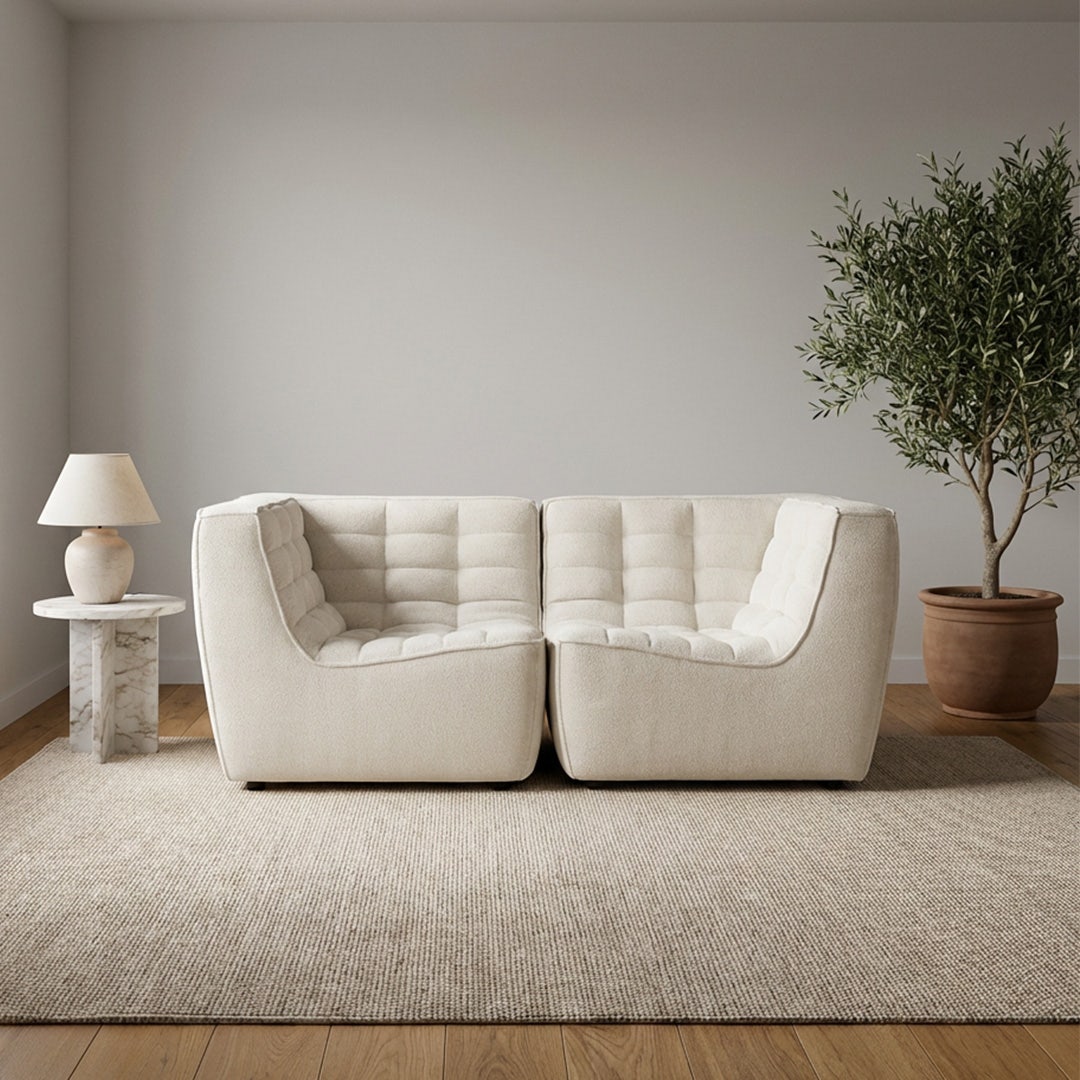 ابتكر ركنًا دافئًا أو وسّع مساحة الجلوس مع طقم إيفان ذو المقعدين، المكوَّن من قطعتين مريحتيْن. يغطيهما قماش فخم الملمس مع تطريز شبكي عميق يضفي لمسة كلاسيكية راقية، مع توفير راحة عصرية في كل مقعد. يتيح التصميم المعياري إمكانية وضع المقعدين معًا لإنشاء زاوية متكاملة، أو فصلهما لتتناسب مع مساحة الغرفة واحتياجاتك. يشمل الطقم مقعدين زاويتين متطابقين، كل منهما مزوّد بمسند ظهر مصمم وحشوة داعمة لضمان جلوس مريح وأنيق في آن واحد.