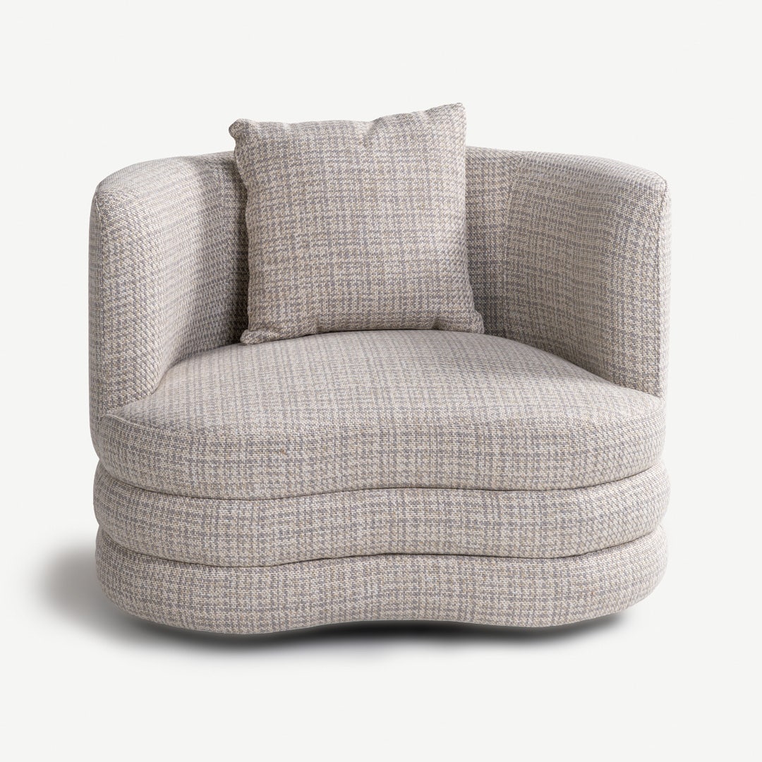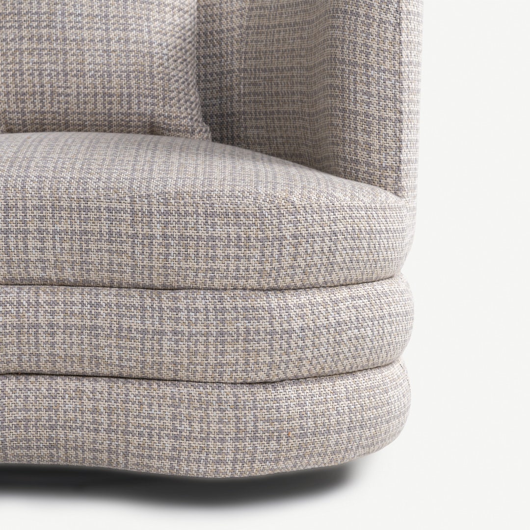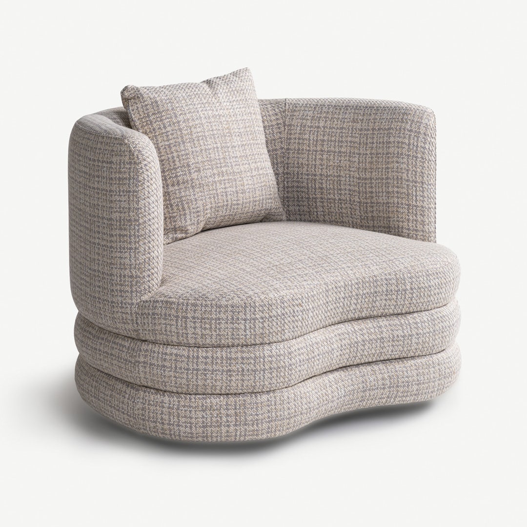 يناسب هذا الكرسي الفردي الزوايا، أو أماكن القراءة، أو أي مكان يحتاج إلى مقعد مريح. الظهر المنحني يحيط بك لتوفير دعم فعّال، بينما تمنح القاعدة متعددة الطبقات ثباتًا متينًا وشكل فني مميز. يتيح المقعد العريض الاسترخاء الجانبي أو الجلوس المريح أثناء التجمعات.
