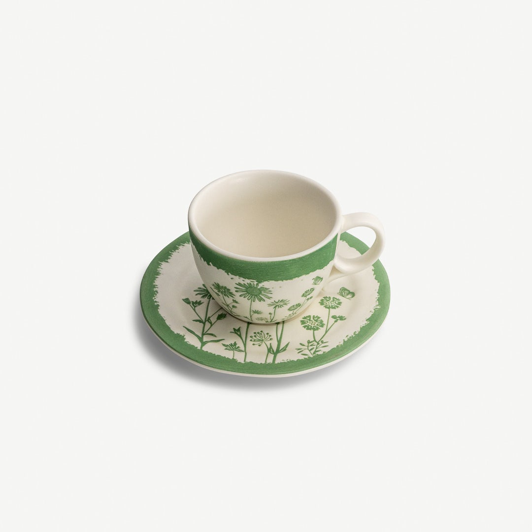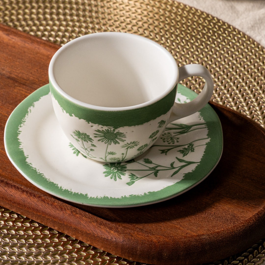 طقم كوب وصحن من البورسلين الراقي يجمع بين الأناقة والأسلوب العملي. بسعة 150 مل وطلاء بدرجات اللون الأخضر الهادئة، ينسجم بسلاسة مع الديكور العصري والكلاسيكي، ليضيف لمسة من الرقي والهدوء إلى لحظات تناول الشاي والقهوة.