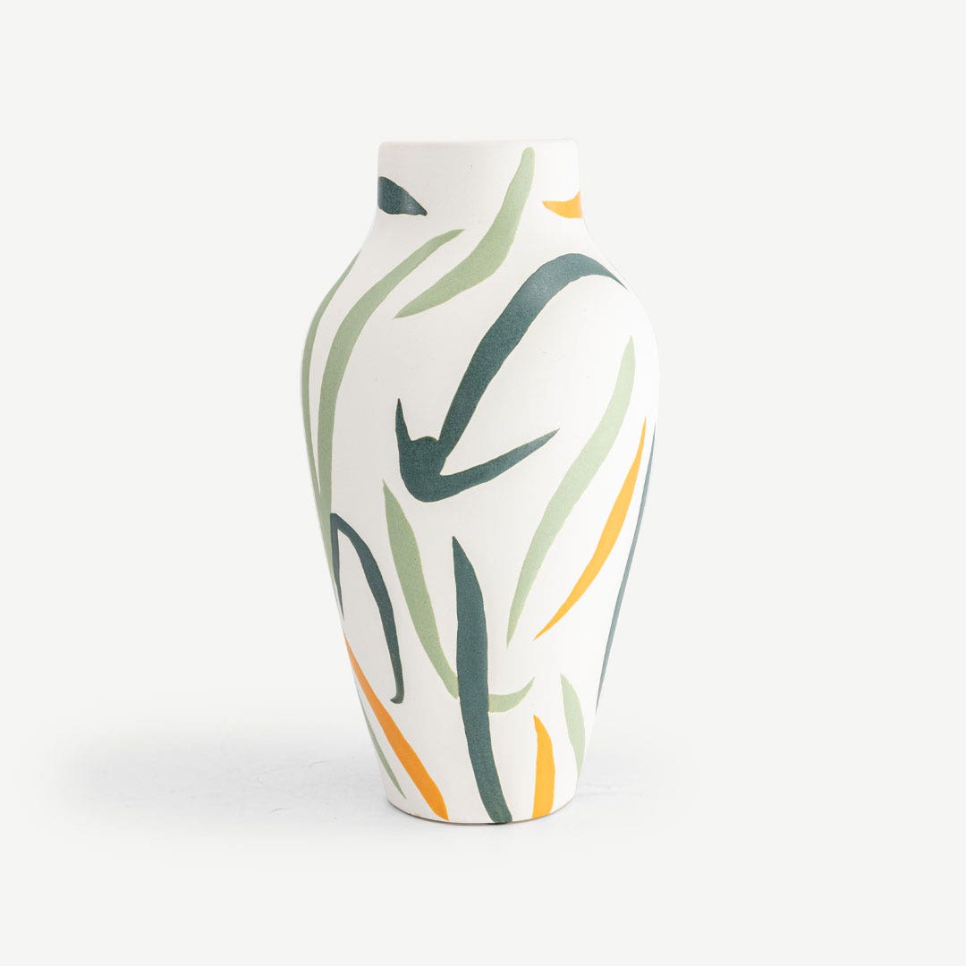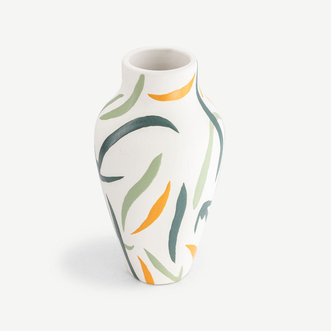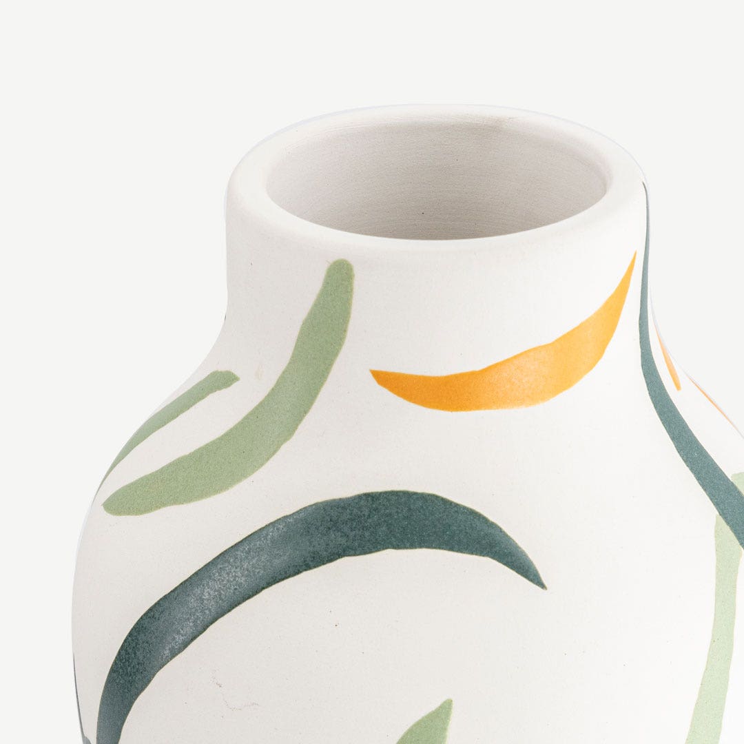 This vase brings a burst of life with its bold, hand-painted design. Use it to hold your favorite flowers, or just place it on a table or shelf to make a statement. It instantly gives any room a fresh, artistic vibe.