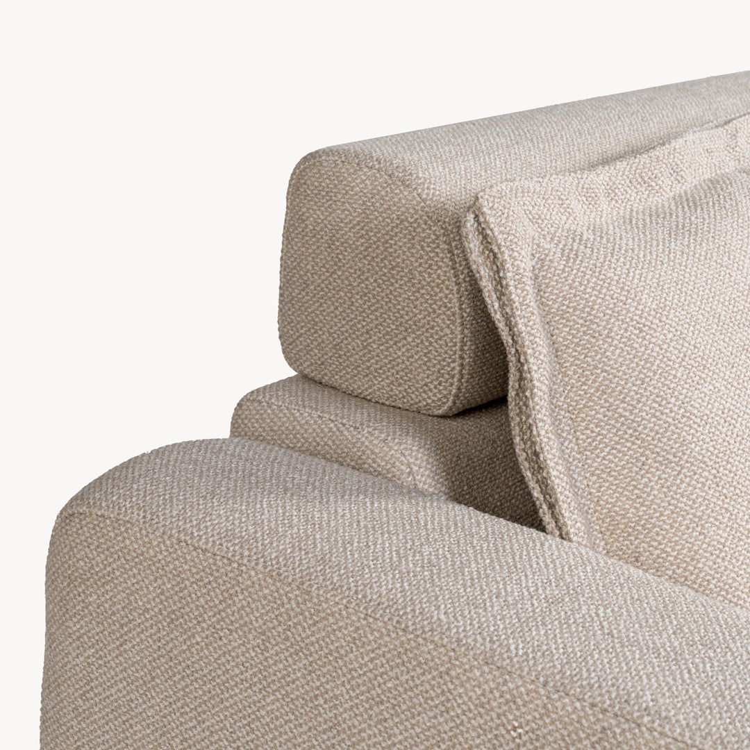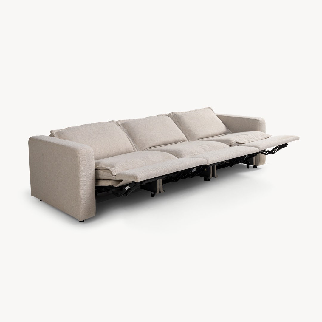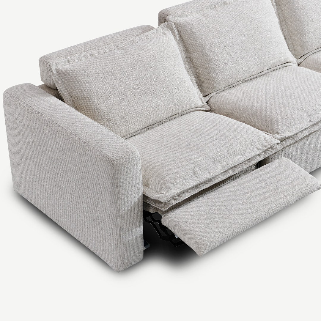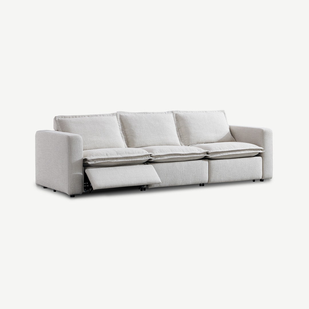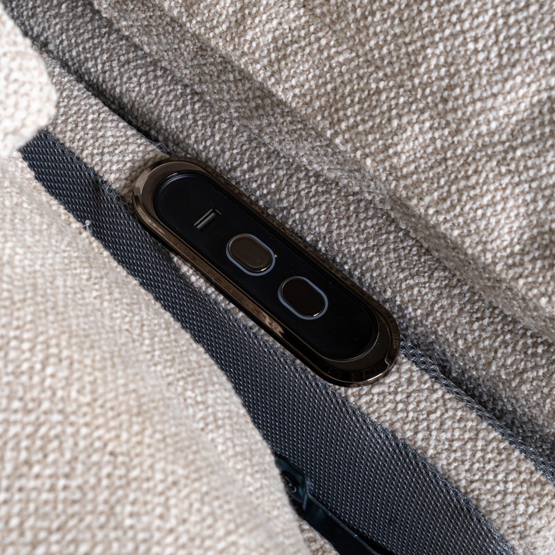 - الخامة: قماش + 50% ريش للمقعد + هيكل خشبي + أرجل خشبية + إسفنج + محرك OKIN + آلية R&M.