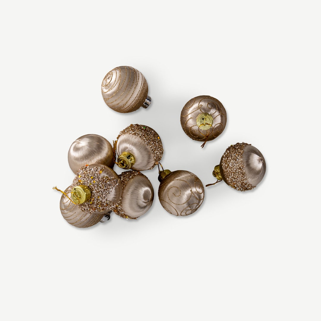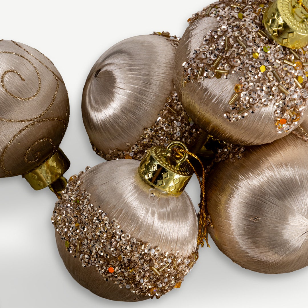 Add a soft shimmer to your tree with this 9-piece set of golden Christmas hanging ornaments. Each bauble balances satin sheen with fine glitter detailing, creating a look that feels festive and elegant. Whether paired with neutral décor or deep greens, it brings that subtle sparkle every home deserves during the holidays. * Set of 9 ornaments in a coordinated gold palette. * Lightweight, durable plastic for easy hanging. * A mix of textured and smooth surfaces adds visual interest. * Ideal for Christmas trees, garlands, and table centrepieces. * Comes in a boxed set for organized storage.