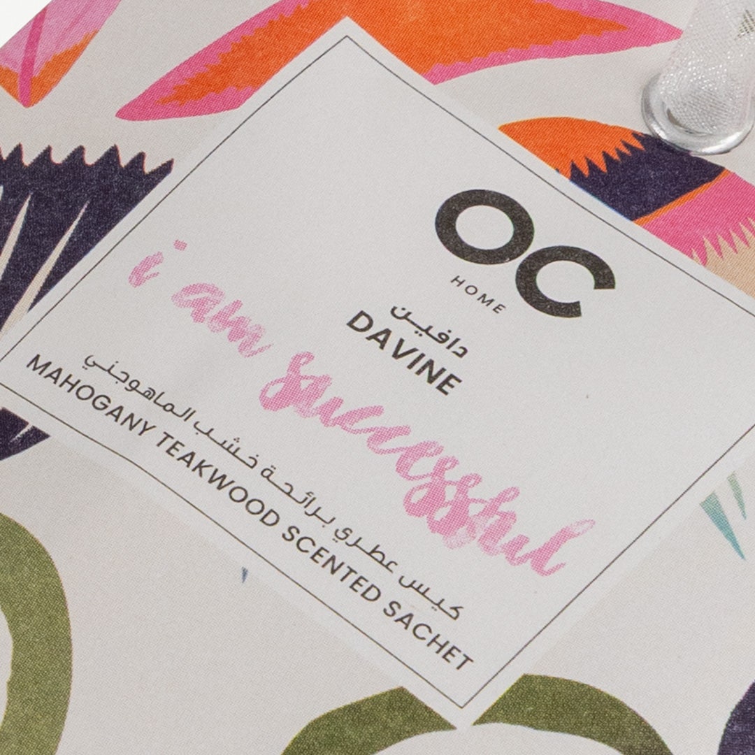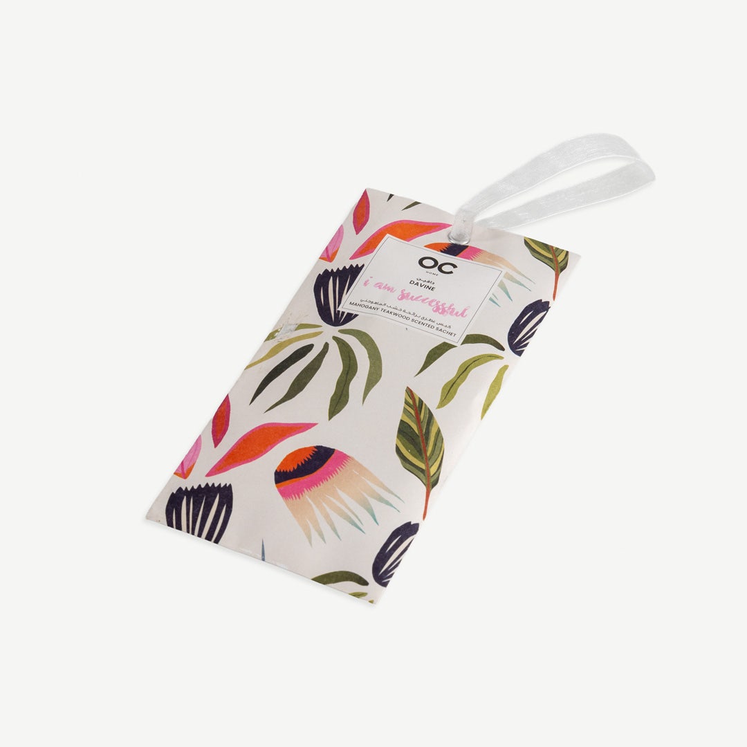 Mahogany Teakwood scented sachet (14.3 × 9.2 × 19 cm) with fragrance powder inside. Compact, stylish and perfect for wardrobes, drawers or small spaces.
