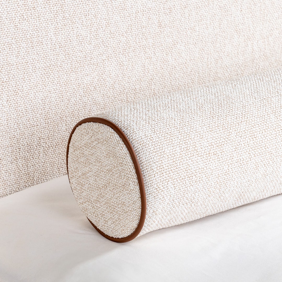 Curl up in comfort. The Vermont king bed, with rounded edges and soft textures, turns your bedroom into a calm retreat. * Upholstered in smooth, soft fabric for a cozy feel. * Leather-look details add warmth and a handcrafted touch. * Sturdy wooden base supports your mattress securely. * Neutral ecru tone blends easily with any bedding or color scheme. * Tapered black legs give a light, modern look.